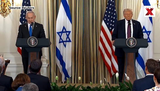 9月29日,特朗普在白宫会晤内塔尼亚胡 视频截图